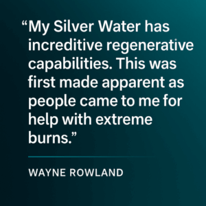 My Silver Water has incredible regenerative capabilities. This was first made apparent as people came to me for help with extreme burns. Many of these burn victims had flesh burned away, parts of their faces, like ears, noses, cheeks, and necks. I could not help but be deeply moved and offer to at least try to help them. I mean, I had my own issues after being burned in an industrial accident, and I found relief from the musical serenade of the music water, so I made up some batches of Silver Water Gel for these people, whom I had compassion and the results were beyond my wildest dreams.